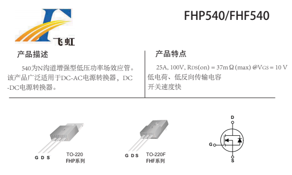 FHP540的主要封裝形式是TO-220、TO-251、TO-252三種,電壓轉(zhuǎn)換器低壓mos管腳位排列位GDS。這款540場(chǎng)效應(yīng)管產(chǎn)品具體參數(shù):Vgs(±V):25;VTH(V):2-4;ID(A):280;BVdss(V):100。RDS (on) = 6.5mΩ(typ)@V GS =10V。具有低電荷、低反向傳輸電容開(kāi)關(guān)速度快,內(nèi)阻低的特點(diǎn)
