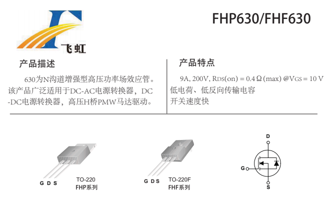 FHP630A的主要封裝形式是TO-220,630A低壓mos管,630A腳位排列位GDS。這款630A場效應管產品具體參數:Vgs(±V):30;VTH(V):2-4;ID(A):9;BVdss(V):200。RDS (on) = 0.4mΩ(typ)@V GS =10V,低電荷、低反向傳輸電容開關速度快,低內阻,大功率的特點。